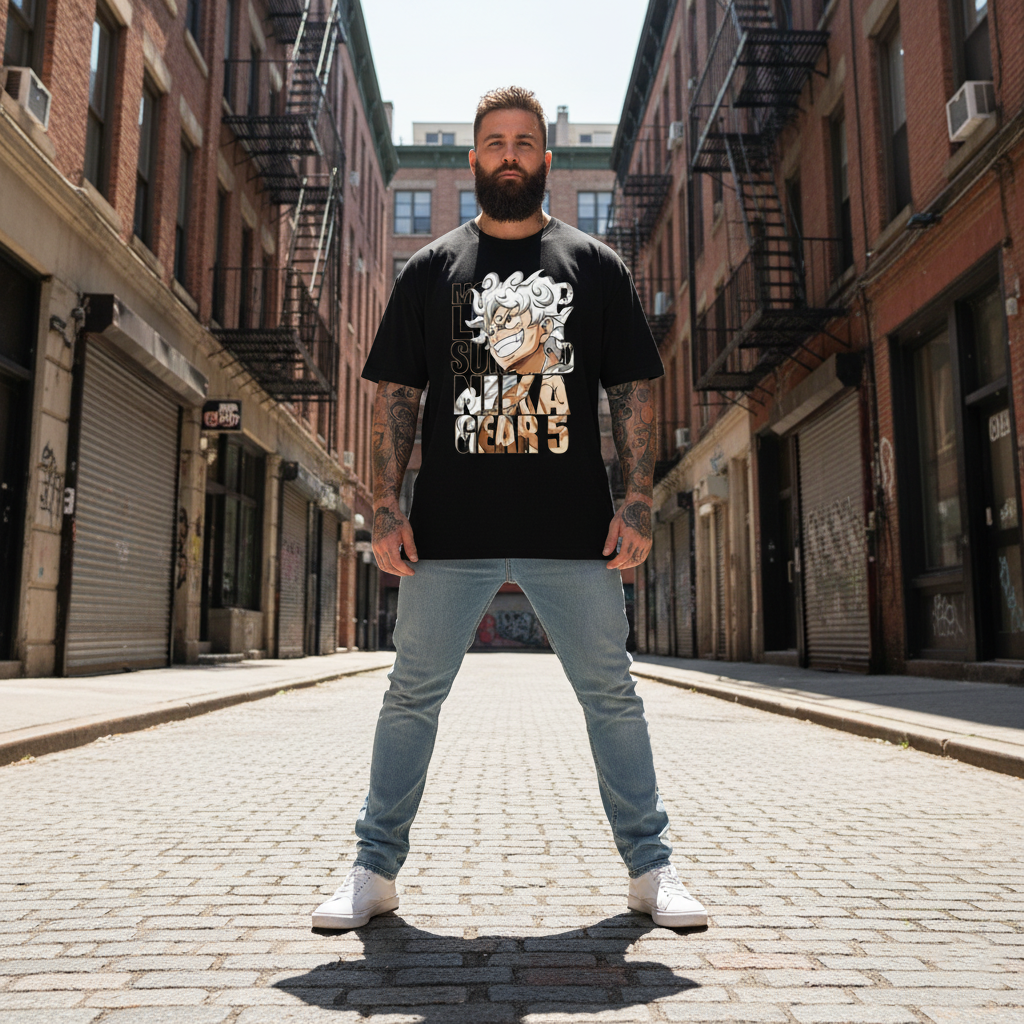 We primarily use high-definition (HD) pigment printing (or Direct-to-Garment) to ensure the detailed manga panels and vibrant back graphics maintain their sharpness and color wash after wash. The print is designed to be highly durable and resistant to cracking.